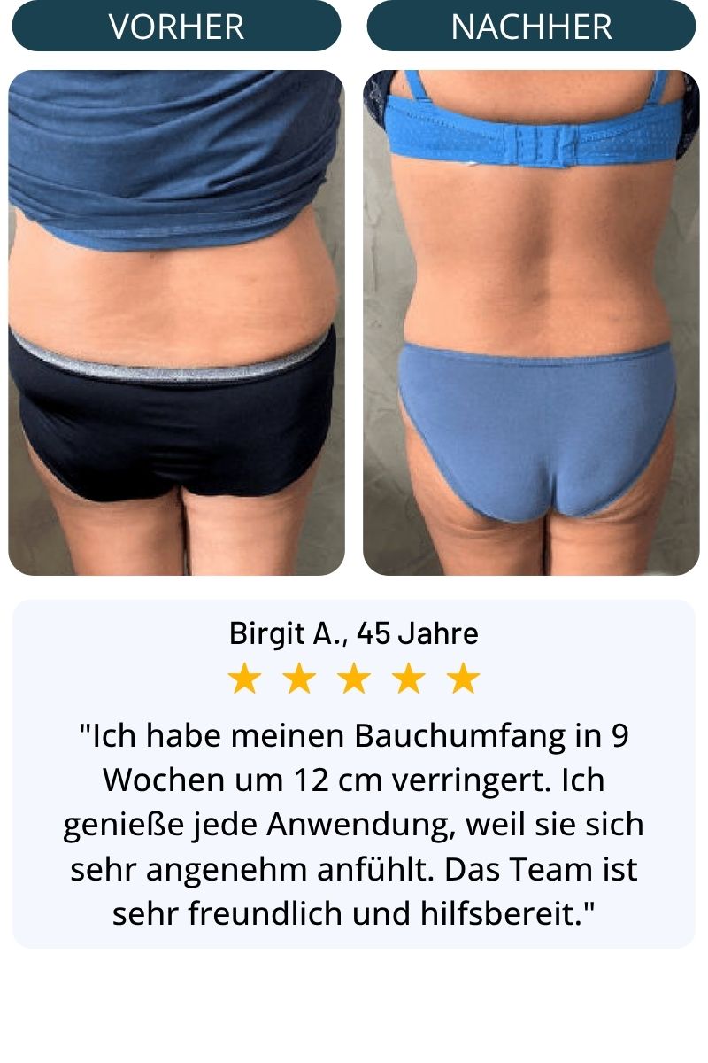 Im Normalfall gibt es bei dieser Art des Abnehmens schon nach der ersten Anwendung messbare Ergebnisse an den Problemzonen. Wie viele Zentimeter eine Person verliert, kann man leider im Voraus nicht festlegen, da jeder Mensch und damit auch die Geschwindigkeit der Reduktion des Körperumfangs anders ist.
